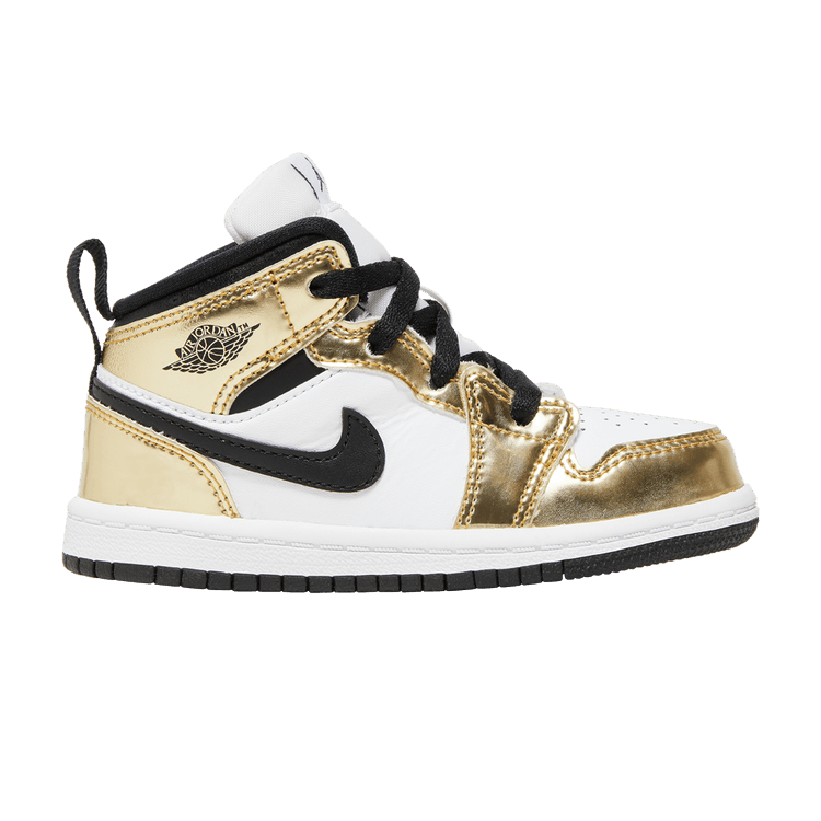 The Jordan 1 Mid Metallic Gold Black White (TD) is now available at Side Kicks!