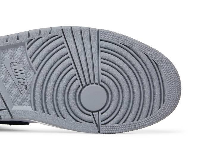 The Air Jordan 1 Mid ‘Paris’ features a white leather upper with a navy suede Swoosh, grey leather flap with Wings logo, and a nylon tongue with a Jumpman and...