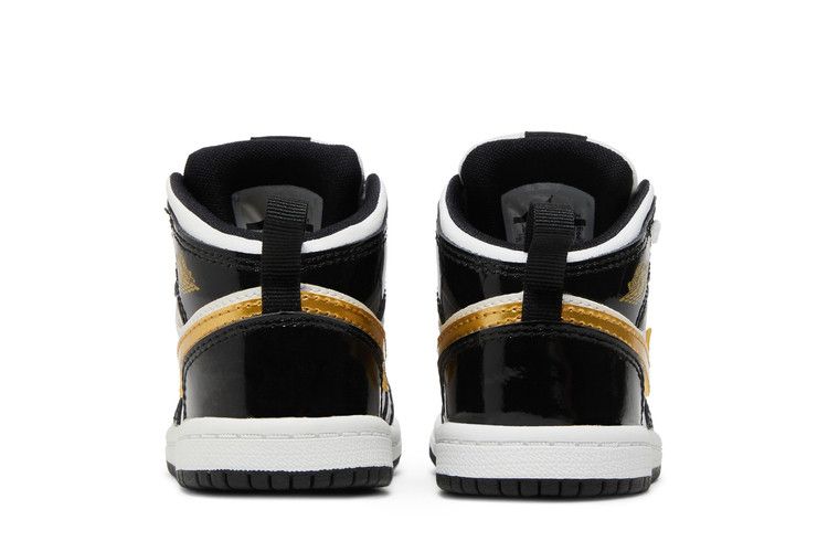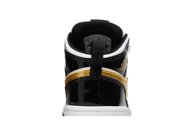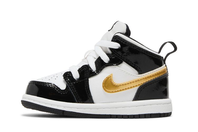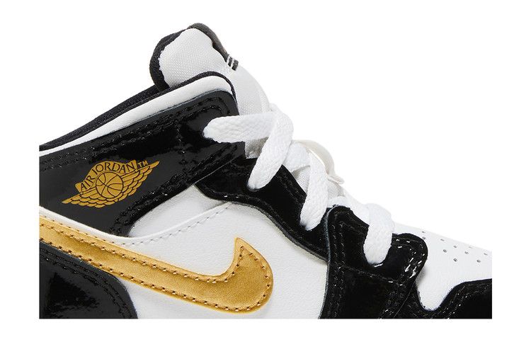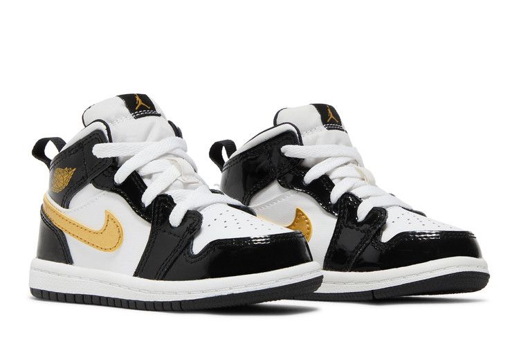 The Jordan 1 Mid Patent Black White Gold (TD) is now available at Side Kicks!
