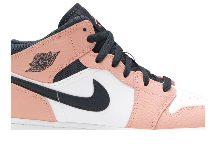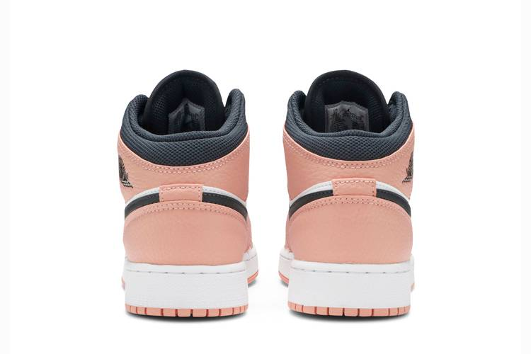 The Jordan 1 Mid Pink Quartz Kids features a Pink Quartz, Dark Smoke Grey, and white leather, nylon, and mesh on the upper with standard leather acting as the base....