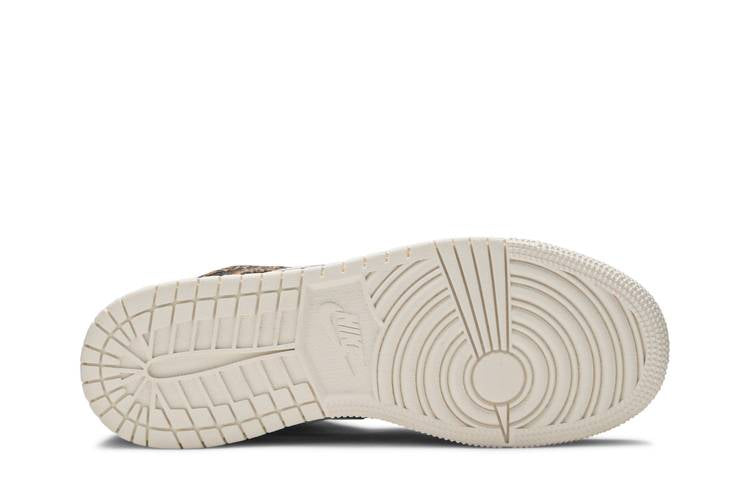 The kids Jordan 1 Mid SE Leopard (GS) features a black base with a classic leopard print design wrapping around the shoe. The cream-colored heel and Nike Swoosh logo offer...