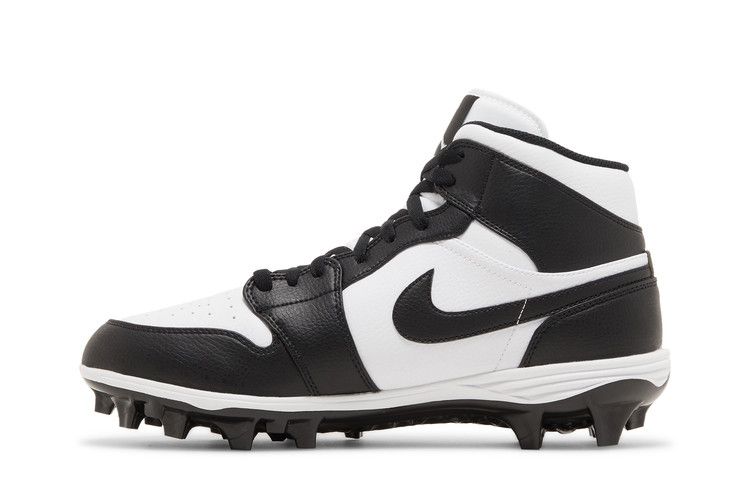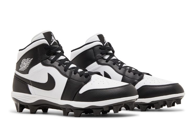 The Jordan 1 Mid-TD Cleat Panda features a high-top design with a monochrome "Panda" colorway. Its synthetic leather upper and Jet Black overlays enhance durability, while football-inspired elements like gridiron...