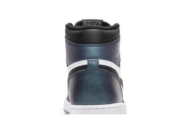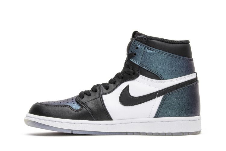The Jordan 1 Retro All-Star Chameleon (2017) (GS) features a black, white, and Metallic Silver colorway designed for grade schoolers. Its leather upper ensures durability, while the rubber outsole provides traction for on- or off-court wear. The shoe includes a Wings logo, Nike Air branding, and a midsole with an Air-Sole unit for cushioning. A standout iridescent finish shifts between green, purple, and teal hues. Released on February 19, 2017, the Jordan 1 Retro All-Star Chameleon (2017) (GS) is available now at Side Kicks.