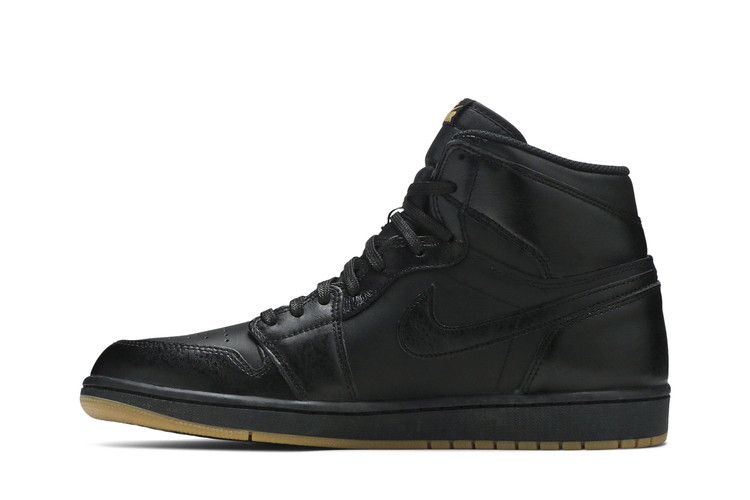 The Air Jordan 1 Retro Black Gold Patent features a full patent leather upper with glossy gold accents on the Swoosh, Wings logo, and tongue patch. It includes a translucent...