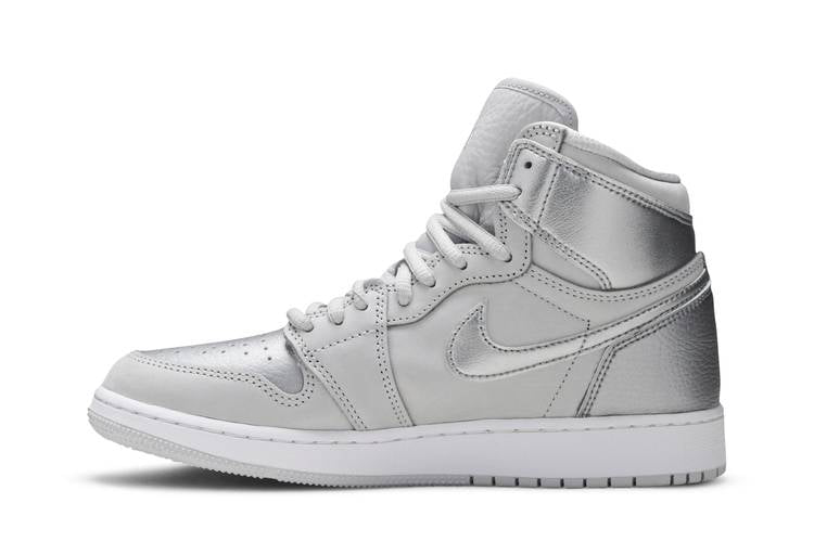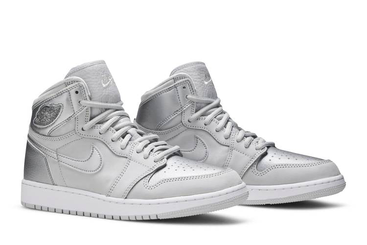The Air Jordan 1 Retro High CO Japan Neutral Grey (GS) is a re-release of the coveted 2001 colorway, originally exclusive to Japan. Featuring a grey nubuck upper with metallic silver accents, this shoe includes the iconic Swoosh logo and jeweled Wings logo on the collar flap. Nike embroidery on the tongue and 'CO.JP' branding on the insoles add to the design details. Perfect for big kids, this shoe offers a classic and stylish look inspired by its Japanese roots.