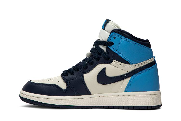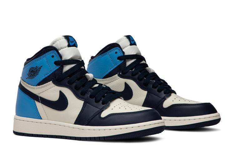 The Air Jordan 1 Retro High Obsidian (GS) is a high-top retro kids' shoe in Sail, Obsidian, and University Blue. Released in August 2019, it stays true to the original...