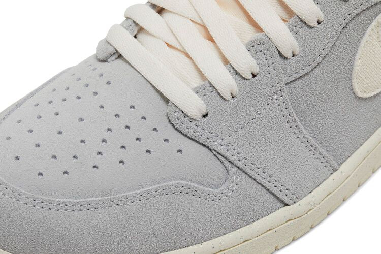 The Jordan 1 Retro High OG Craft Ivory features a premium suede upper in Sea Glass with Ivory canvas overlays and heel panel. The design includes a mesh tongue in...