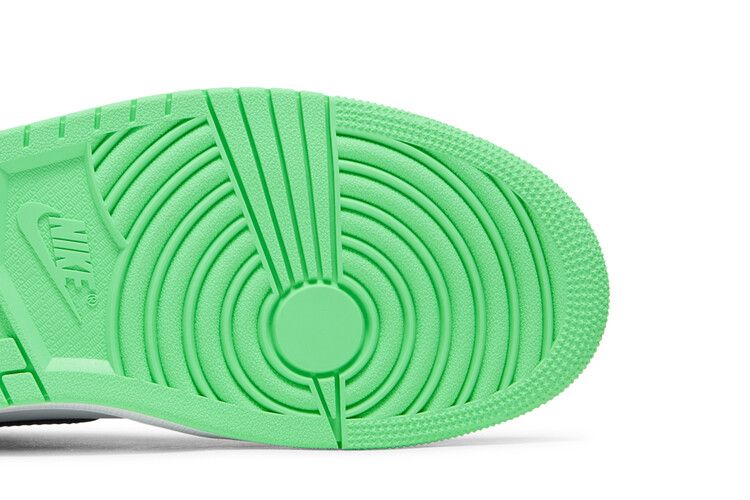 The Jordan 1 Retro High OG Green Glow (GS) features a white, black, and Green Glow colorway on a premium leather upper. It includes Green Glow accents on the vamp,...