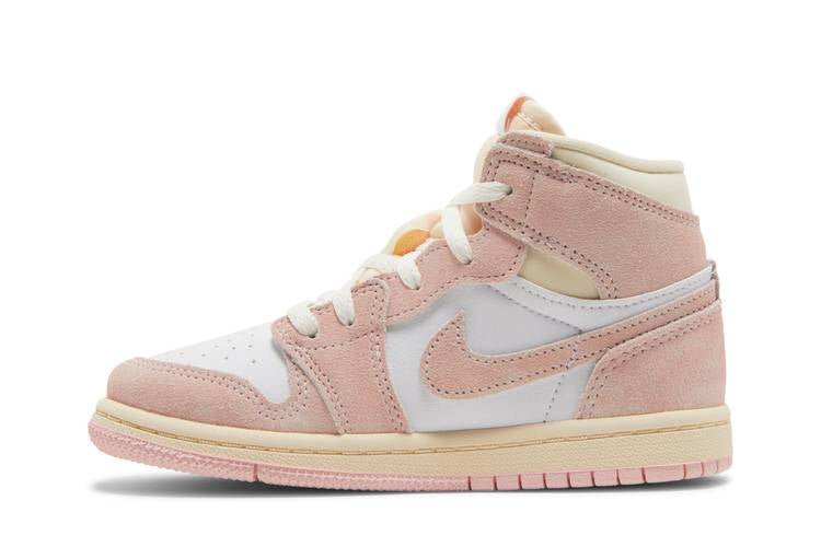 The Jordan 1 Retro High OG Washed Pink (TD) is a toddler-sized version of the classic silhouette. Featuring a white leather base with faded pink suede overlays and a matching Swoosh, this sneaker stays true to the iconic design. Complete with traditional branding elements like the Nike tongue tag and Wings logo, the shoe also boasts a pre-yellowed vintage midsole and soft pink rubber outsole for a retro look. Perfect for little feet, this shoe combines style and comfort in a miniature package.