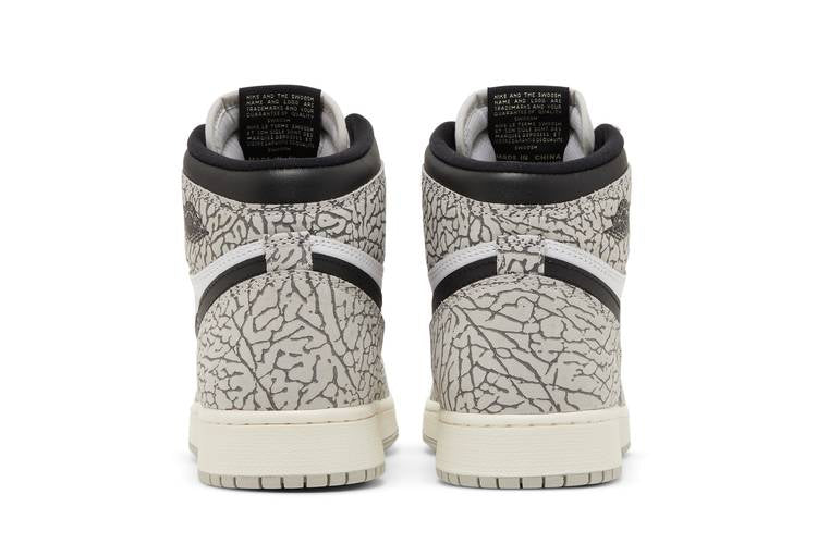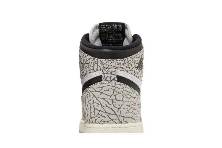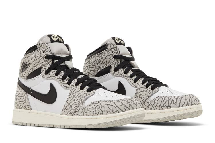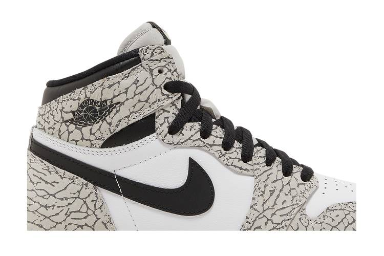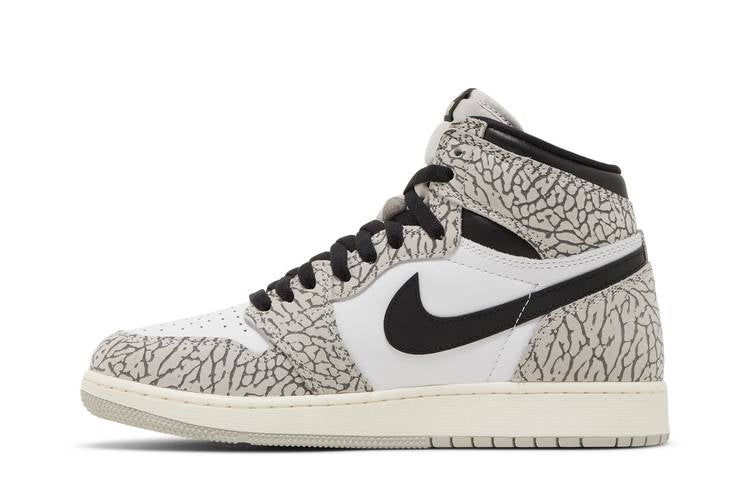 The Air Jordan 1 Retro High OG White Cement (GS) is a stylish and iconic sneaker designed for older kids. Featuring a white leather upper with grey elephant print overlays and a black leather Swoosh, this shoe pays homage to the classic Air Jordan 3 design. The shoe also includes a woven Nike Air tag on the tongue and a retro Wings logo on the ankle. With a vintage-inspired off-white midsole, this sneaker combines retro aesthetics with modern comfort and support.