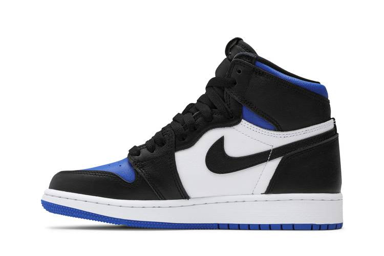 The Air Jordan 1 Retro High OG GS ‘Royal Toe’ is designed for big kids and features a white and royal blue leather upper with black overlays and Swooshes. The...