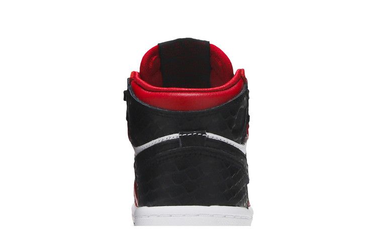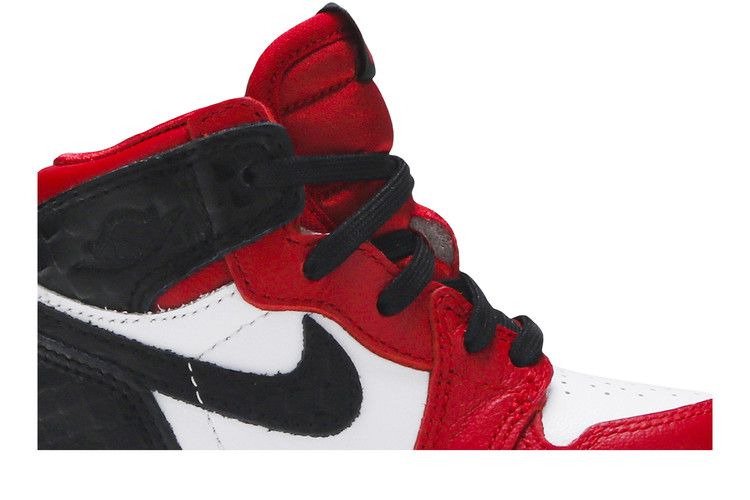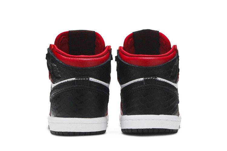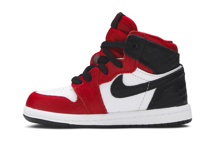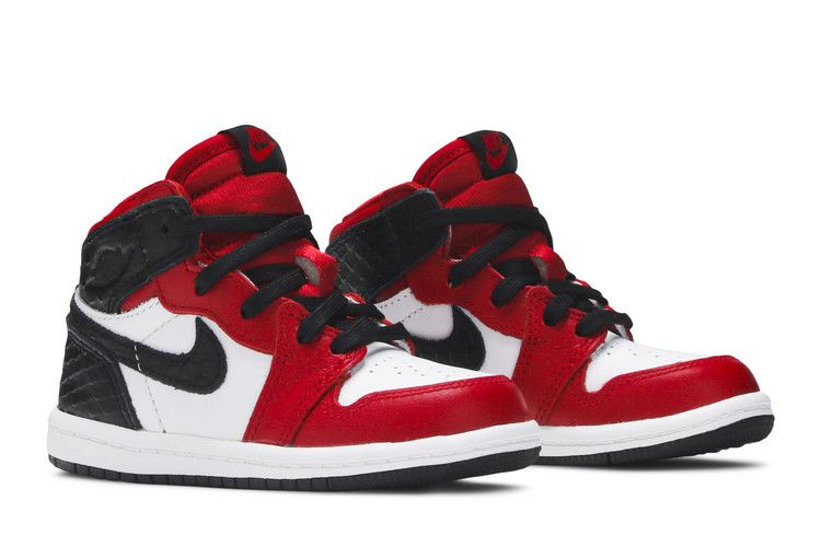 The Air Jordan 1 Retro High Satin Snake Chicago TD features a black and red color scheme inspired by the original "Chicago" design. The upper combines satin fabric with synthetic...