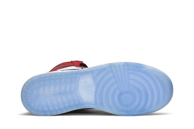 The Jordan 1 Retro High Spider-Man Origin Story (GS) pays homage to the 2018 film Spider Man: Into the Spider-Verse with a limited edition design. The leather upper features a white base and red overlays with reflective texturing, inspired by the shoes worn by character Miles Morales. Signature details include an iridescent Nike Air tongue label, wings logo on the ankle, and an icy translucent outsole. Available in gym red and photo blue, this grade school sizing sneaker is a must-have for fans of the iconic Air Jordan 1 silhouette.
