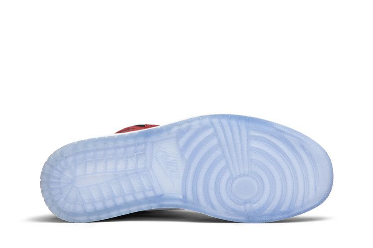 The Jordan 1 Retro High Spider-Man Origin Story features a white upper with red accents, black Nike Swoosh, white midsole, and translucent sole. Released on December 2018, the Jordan 1 Retro High Spider-Man Origin Story is available now at Side Kicks.
