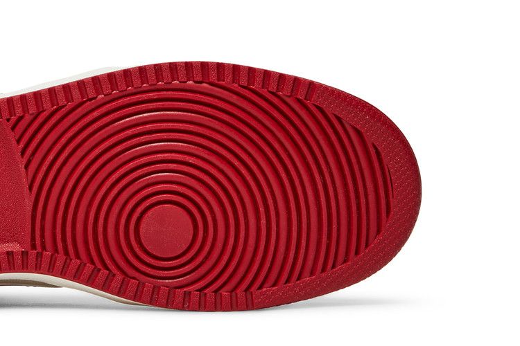 The Jordan 1 Retro KO Sail features a white canvas upper with varsity red accents on the tongue, Swoosh, and Wings logo. It retains the original KO design with Vandal...