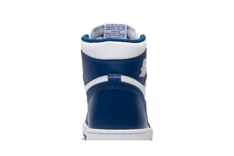 The Air Jordan 1 Retro Storm Blue is a classic sneaker that was reintroduced as part of the Air Jordan Holiday 2016 pack. Featuring original Air Jordan 1 branding elements like the Nike Air logo on the tongue and the iconic 'Wings' logo, this shoe also boasts a clean Jumpman logo-free heel. The colorway of white and blue gives a fresh and stylish look to this silhouette. With a mix of white on the upper, midsole, and sides, and blue on the overlay, toe, heel, and outsole, this sneaker is a standout addition to any collection. The Air Jordan 1 Retro Storm Blue is a must-have for fans of the iconic Air Jordan line.