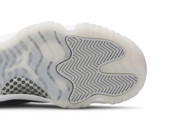 The women's Air Jordan 11 ‘Jubilee’, commemorating the silhouette's 25th anniversary, boasts a sleek black finish blending ballistic mesh and patent leather. The shoe features a 3D metallic Jumpman and '23' branding on the heel, complemented by silver 'Jordan' lettering on the eyelets. Supported by a white foam midsole and translucent rubber outsole, this design signifies the timeless style of the Air Jordan 11.