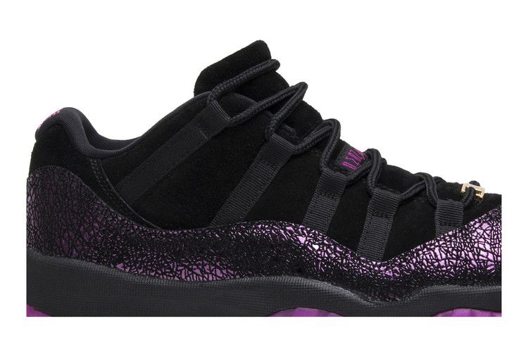 The Women’s Air Jordan 11 Low Think 16 features a black suede upper with fuchsia accents, replacing the traditional patent leather with a unique graphic design. Part of Nike’s "Think...