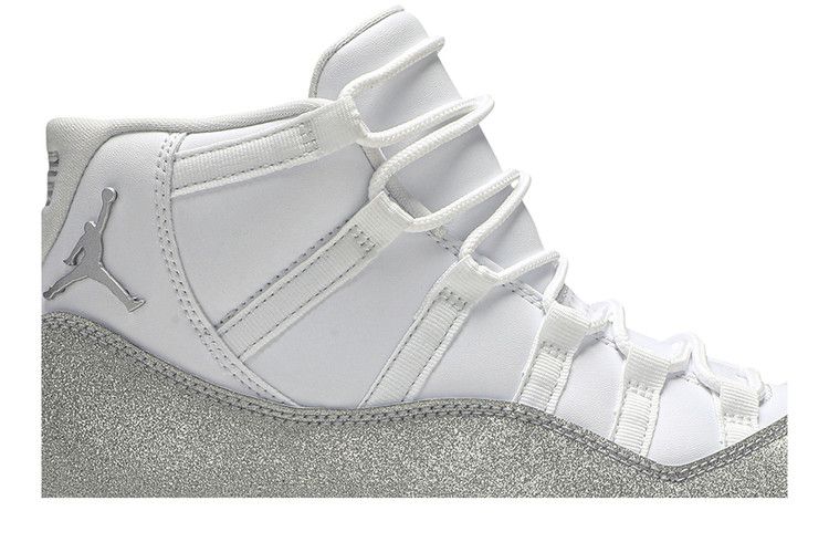 The women's Air Jordan 11 Retro White Metallic Silver (W) features a white upper with a metallic silver finish instead of the traditional patent leather. It includes a white midsole...
