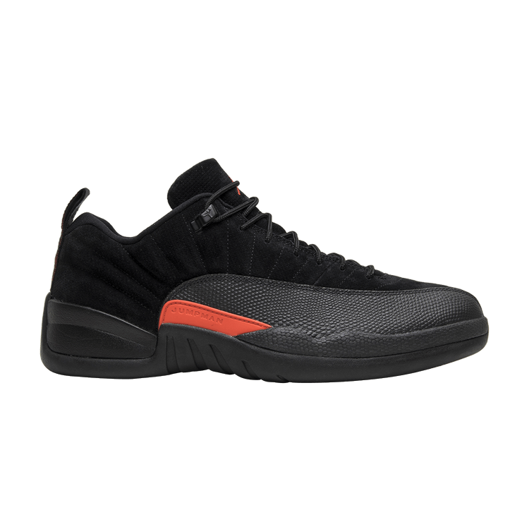 The Air Jordan 12 Retro Low Max Orange has a black leather upper with Max Orange accents on the tongue, heel, and outsole. It features a Phylon midsole and full-length...