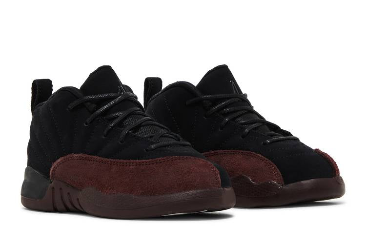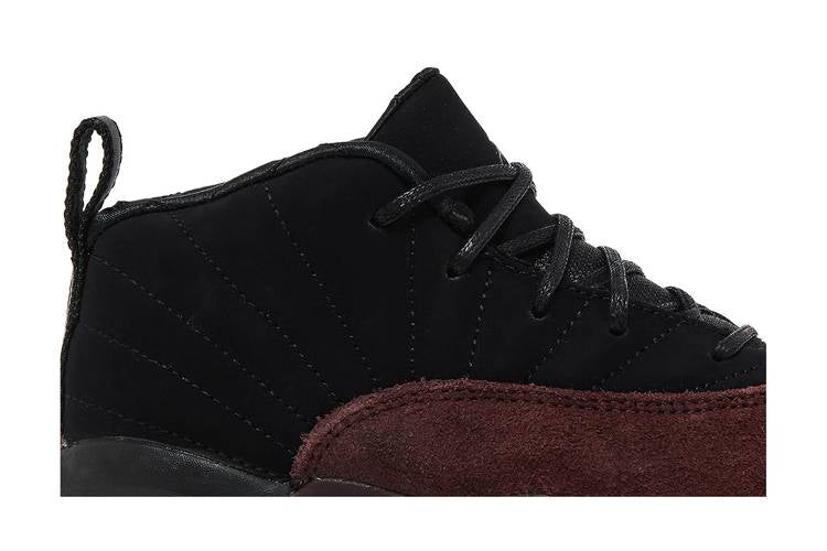 The Jordan 12 Retro SP A Ma Maniére Black (TD) is a premium toddler-sized sneaker featuring black stitched nubuck and Burgundy Crush hairy suede overlays. With waxed laces, quilted lining,...