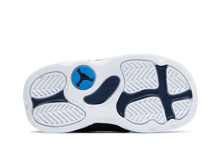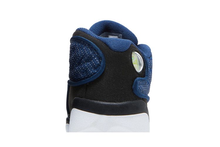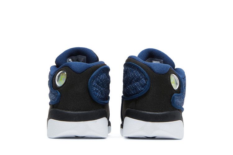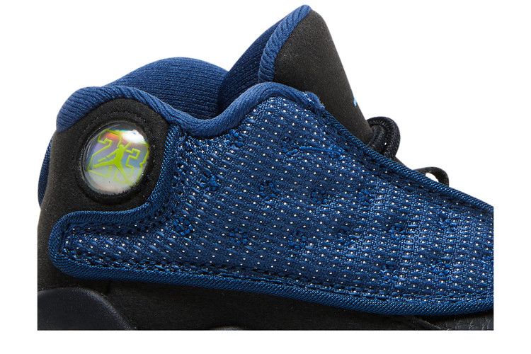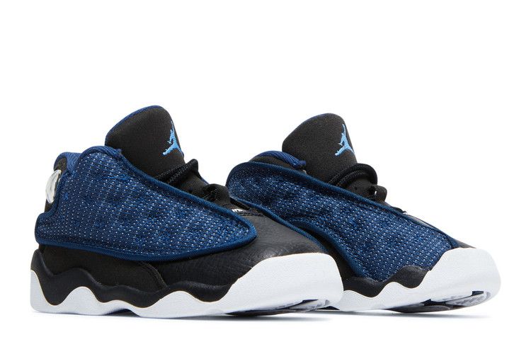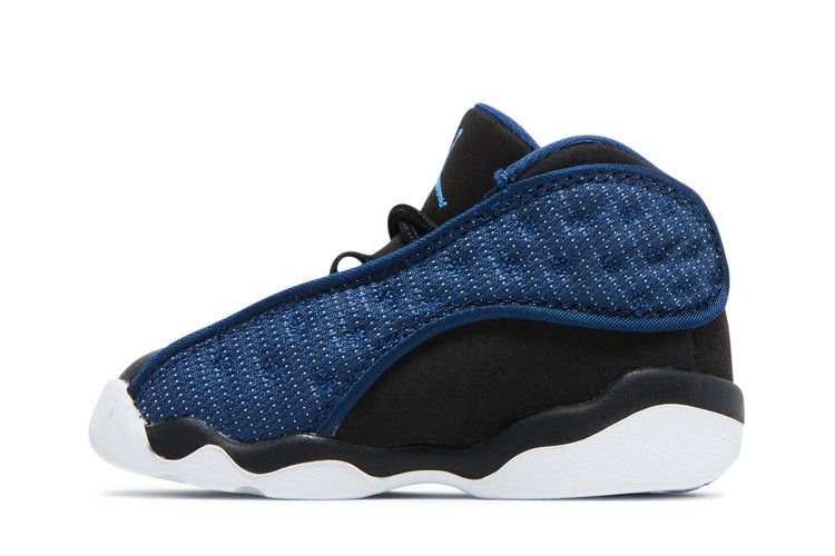 The Air Jordan 13 Retro Brave Blue (2022) (TD) features a Brave Blue dimpled nylon upper with black tumbled leather accents. It includes a white midsole and outsole, along with...