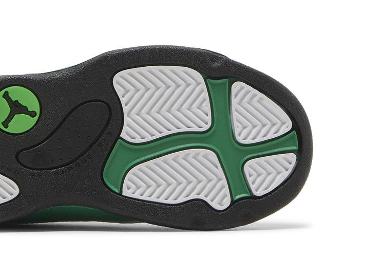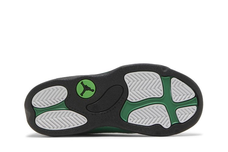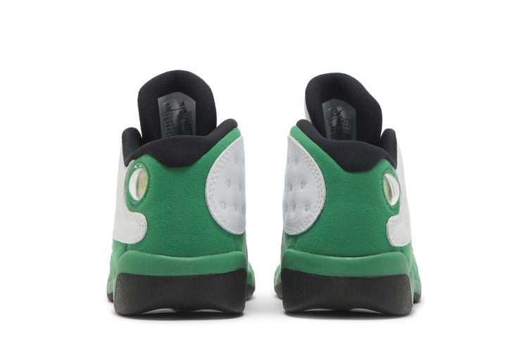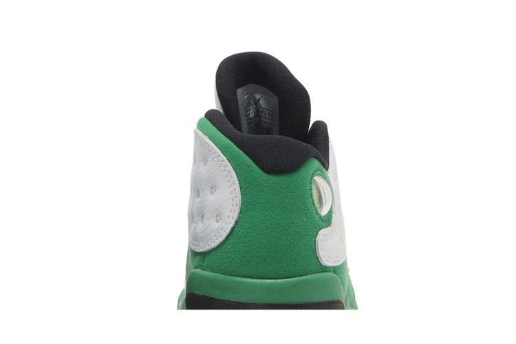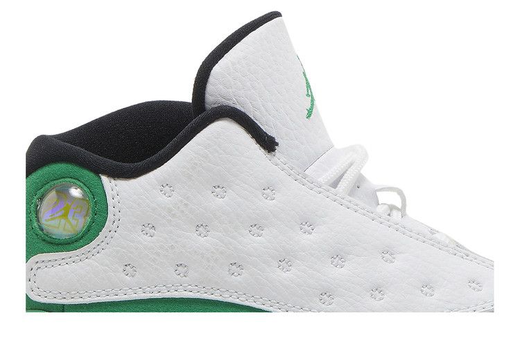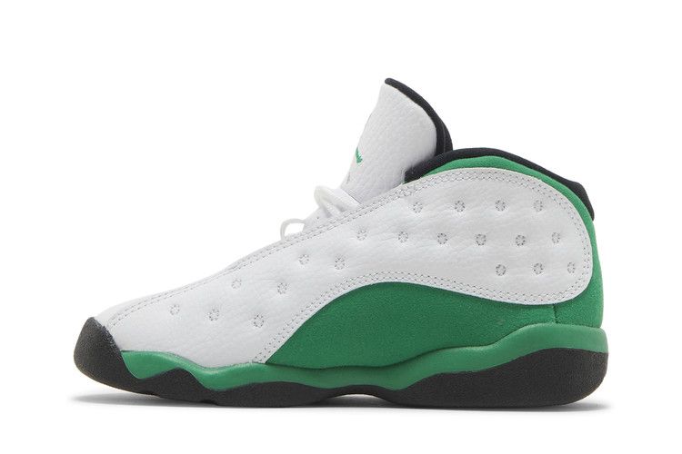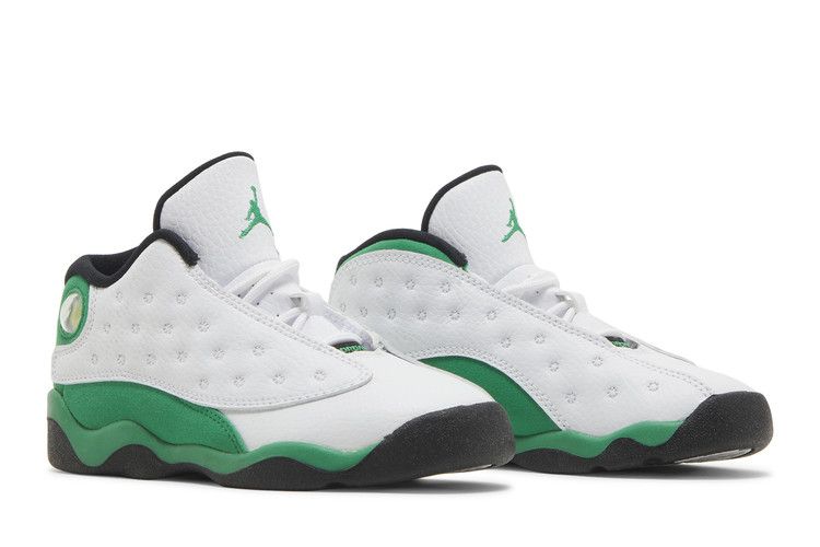 The Jordan 13 Retro White Lucky Green (TD) features leather and synthetic suede panels in a White and Lucky Green color scheme. Textured white leather covers the toe box, while...
