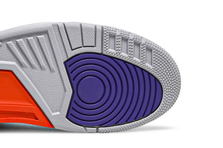 The Air Jordan 3 Retro ‘Court Purple’ features a black tumbled leather upper with elephant print overlays. Violet accents appear on the collar, eyelets, and midsole, with orange details on the tongue and branding. The shoe includes visible Air cushioning in the heel and a raised Jumpman icon on the tongue and heel. Released in 2020, this sneaker combines luxury leather with sporty style, offering a fresh take on the iconic Air Jordan 3 design.