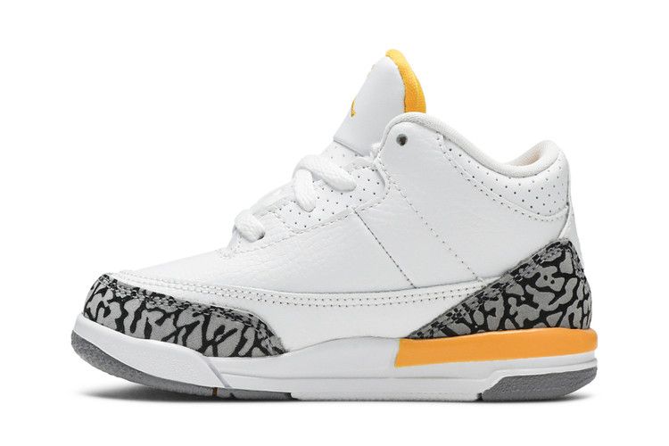 The Air Jordan 3 Retro Laser Orange (TD) features a toddler-sized version of the classic Air Jordan 3 design. It combines a white leather and synthetic upper with bold orange...