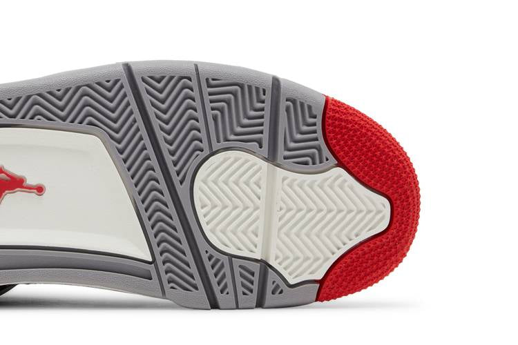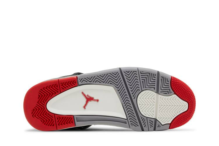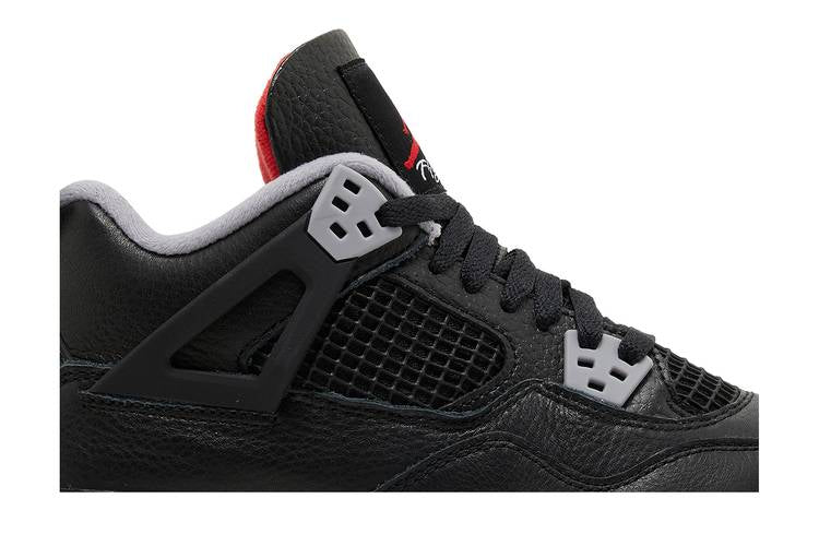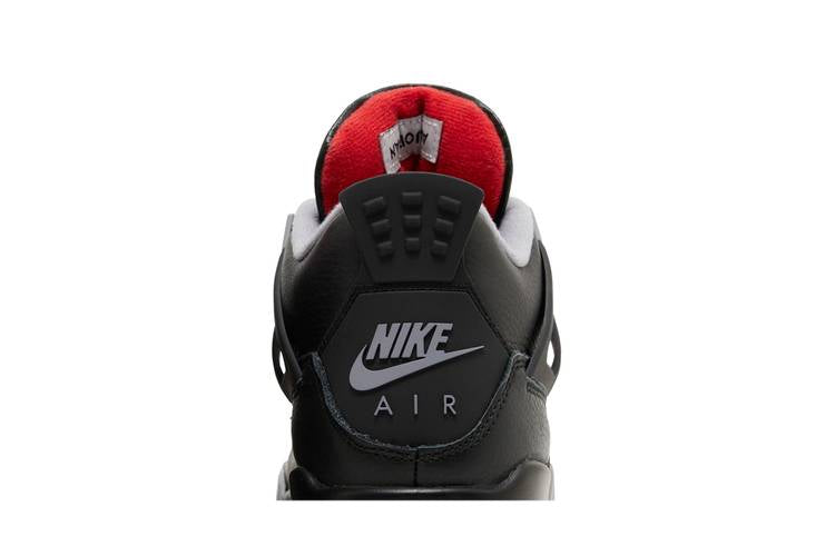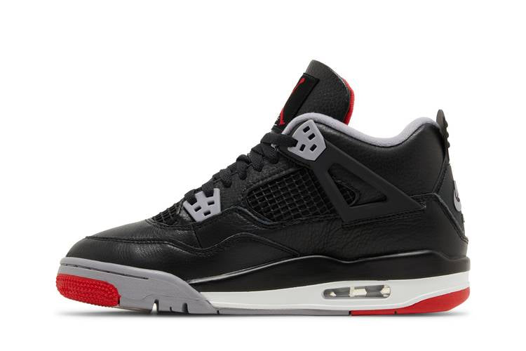 The Air Jordan 4 Retro Bred Reimagined (GS) is designed for big kids and features a black leather upper, Cement Grey accents, and Nike Air branding on the heel tab....