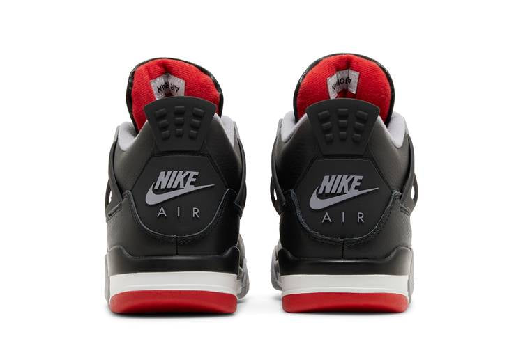 The Air Jordan 4 Retro Bred Reimagined (GS) is designed for big kids and features a black leather upper, Cement Grey accents, and Nike Air branding on the heel tab. The shoe also includes a polyurethane midsole with a visible Air-sole unit in the heel for lightweight cushioning. Inspired by the original Bred colorway, this sneaker combines classic elements with a fresh twist, making it a stylish and comfortable choice for everyday wear.