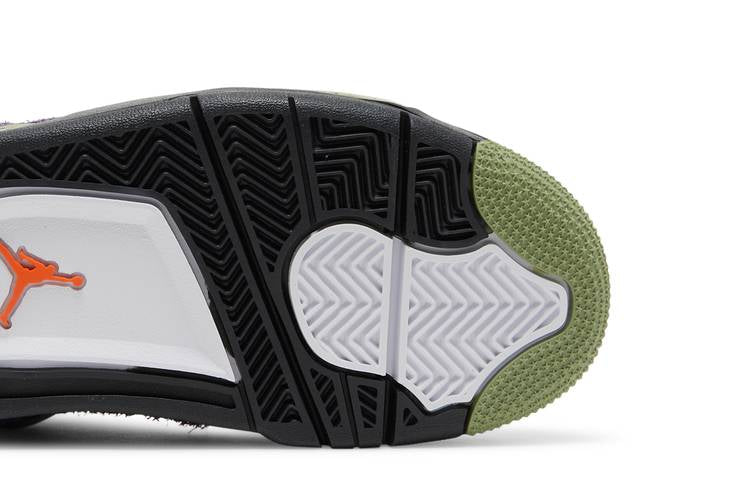 The women’s Air Jordan 4 Retro ‘Canyon Purple’ features a shaggy suede upper in vibrant purple with lime green accents on the eyelets and midsole. The Jumpman logo appears on the woven tongue tag in Safety Orange. Black details can be found on the molded wings, Jumpman-embossed heel tab, and herringbone-traction rubber outsole. Inspired by Tinker Hatfield’s 1989 design, this shoe offers a unique and colorful take on a classic silhouette.