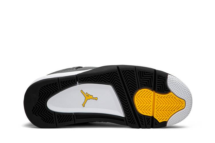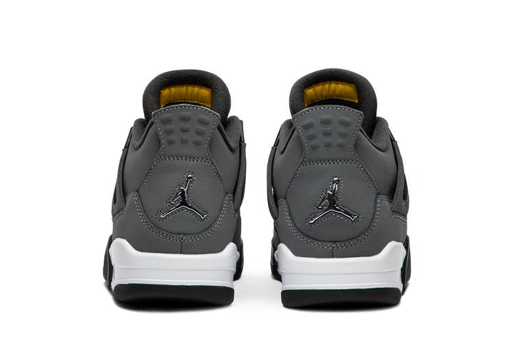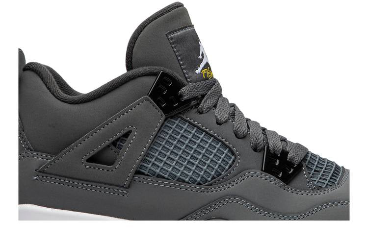 The Air Jordan 4 Retro Cool Grey (2019) (GS) features a suede upper with mesh details, designed specifically for grade-schoolers. The colorway includes cool grey, chrome, dark charcoal, and varsity maize accents. The shoe pays homage to the original design with Jumpman branding, plastic lace locks, and a leather and synthetic construction. It also boasts a visible Air-Sole unit in the heel and an outsole with a herringbone pattern for traction. Released in August 2019, this updated version celebrates the 30th anniversary of the iconic silhouette.