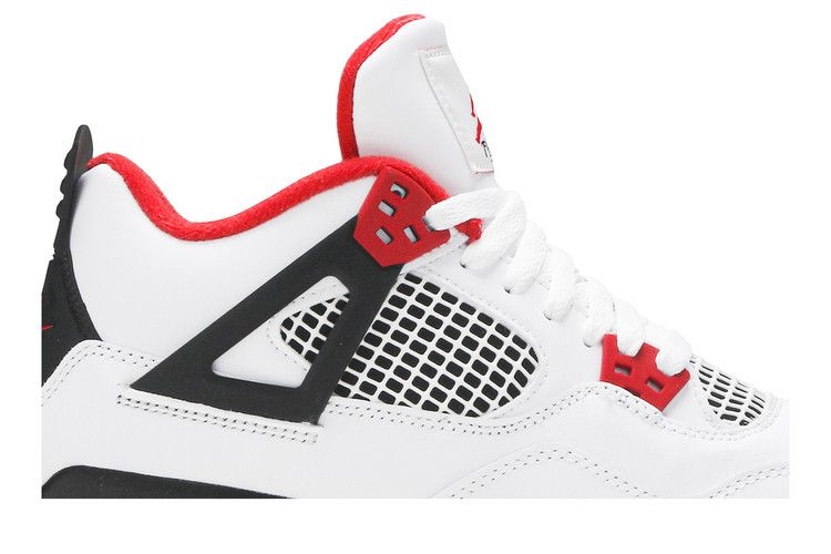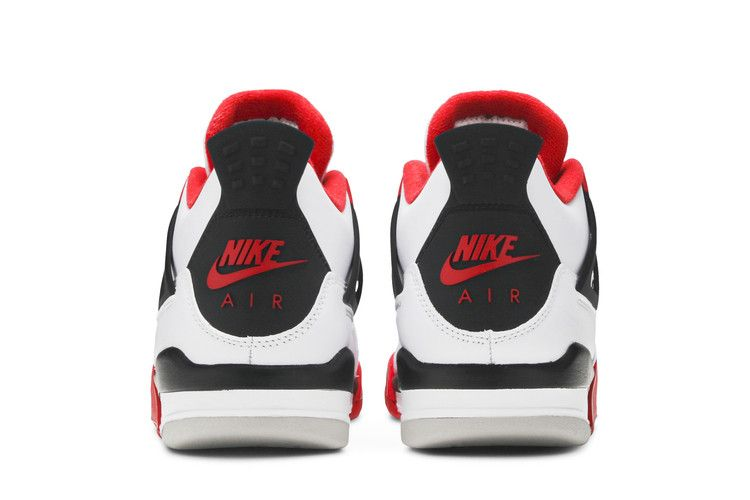 The 2020 Air Jordan 4 Retro Fire Red (GS) reissue features a white leather upper with black and red accents, reminiscent of the original 1989 release. Jumpman branding on the tongue and Nike logo on the heel pay homage to the classic design. This mid-top sneaker is a must-have for young sneaker enthusiasts looking to rock a piece of sneaker history.