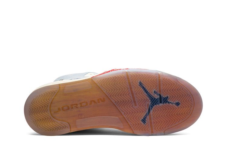 The Air Jordan 5 Retro Trophy Room Ice Blue features a blue suede upper with a white midsole and translucent outsole. Red accents appear on the sock liner and Jumpman-branded...