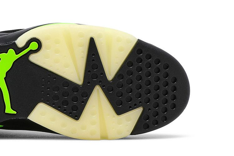 The Air Jordan 6 Retro 'Electric Green' features a black nubuck upper with neon green accents on the tongue and pull tab. Embroidered Jumpman branding on the back heel. Polyurethane...