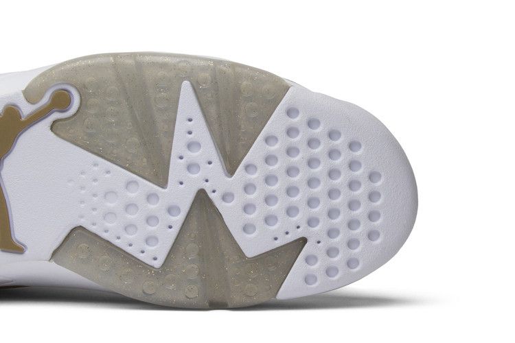 The Air Jordan 6 Retro Pinnacle Metallic Gold features a patent leather upper in a striking metallic gold finish, paired with matching gold laces. White accents highlight the tongue, sockliner,...