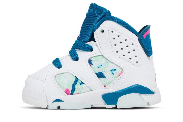 The Jordan 6 Retro White Laser Fuchsia Green Abyss (TD) is now available at Side Kicks!