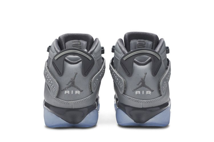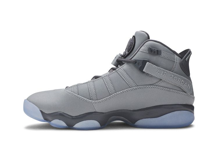 The Jordan 6 Rings 3M (2020) blends design elements from the sneakers worn during Michael Jordan’s six NBA championships. The upper combines leather and synthetic materials in a gray colorway with black accents on the laces and tongue logo. A rubber outsole features a translucent Icy Blue finish, while the midsole is black. Unique details include fuzzy tongue branding and 'Air Jordan' text on the lace straps. The lacing system incorporates a lace lock with side straps for a secure fit. Released on January 9, 2020, the Jordan 6 Rings 3M is available now at Side Kicks.