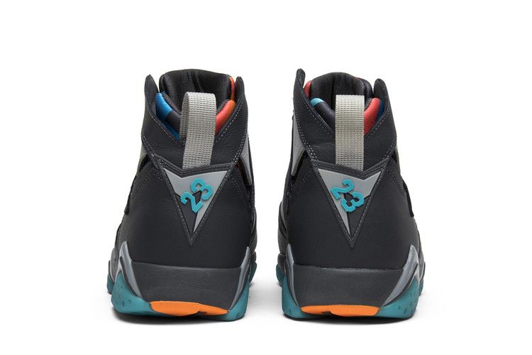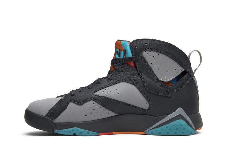The Air Jordan 7 Retro Barcelona Days features a grey, Turquoise Blue, Wolf Grey, and Total Orange colorway. The upper combines leather and suede for durability and breathability, with a...