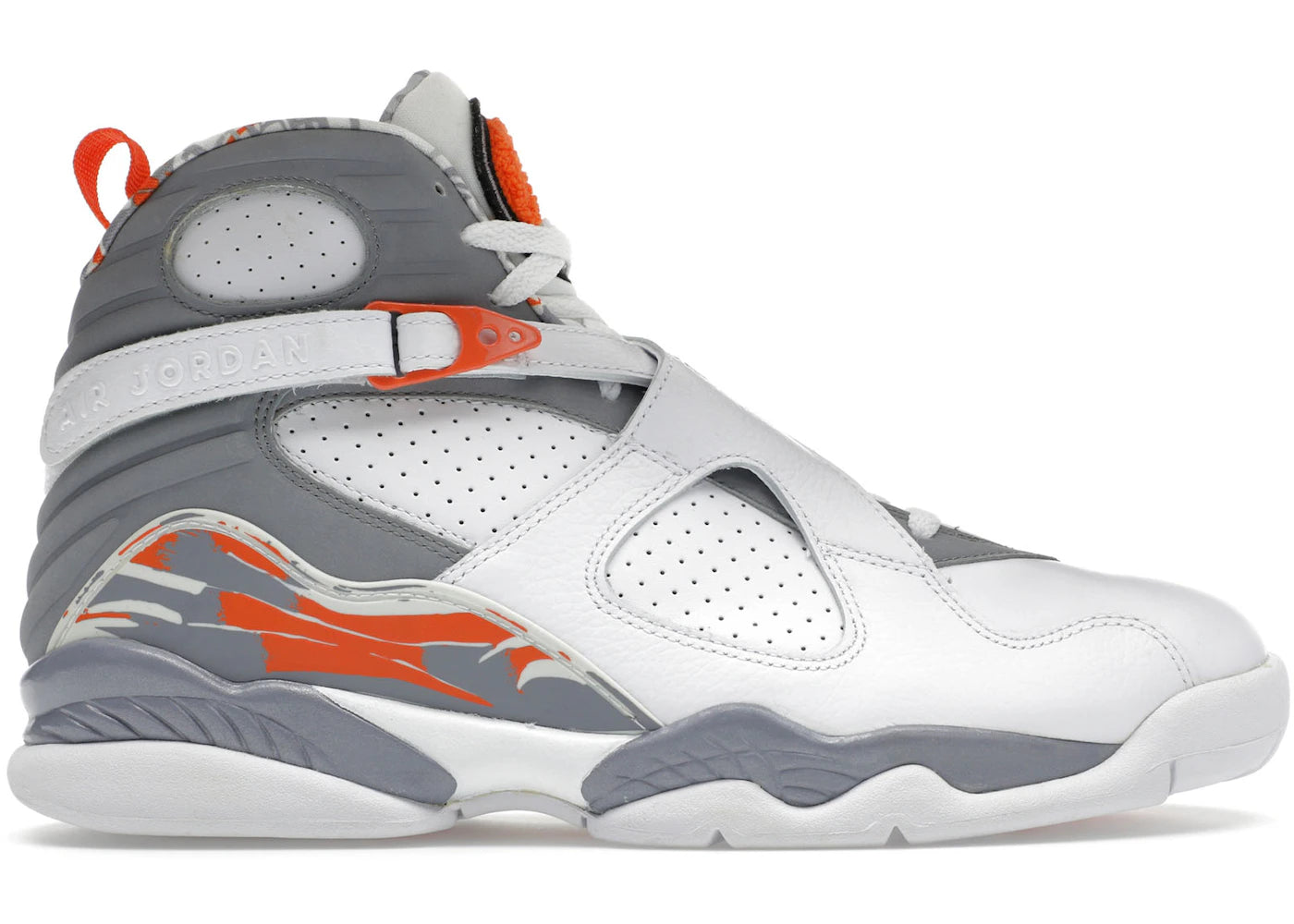 The Jordan 8 Retro Orange White is now available at Side Kicks!