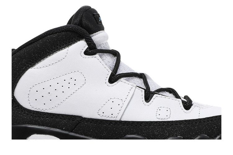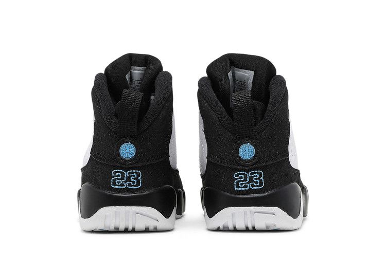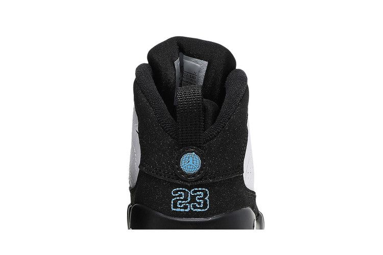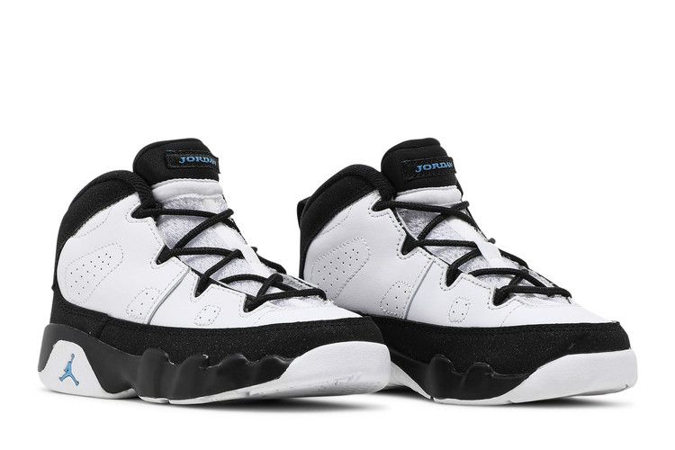 The Air Jordan 9 Retro University Blue TD has a white leather upper with University Blue accents on the midsole, tongue, and heel. It features the Jumpman logo on the...