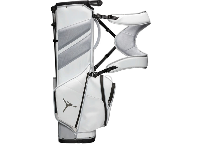 The Jordan Fade Away Premium Mirror Six-Way Golf Bag White/Wolf Grey/Metallic Silver is now available at Side Kicks!