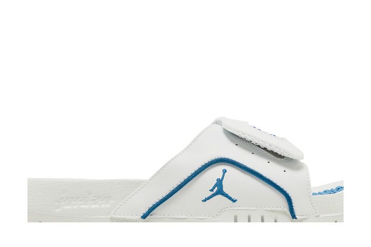 The Jordan Hydro 4 Retro Off White Neutral Grey Industrial Blue (GS) is now available at Side Kicks!