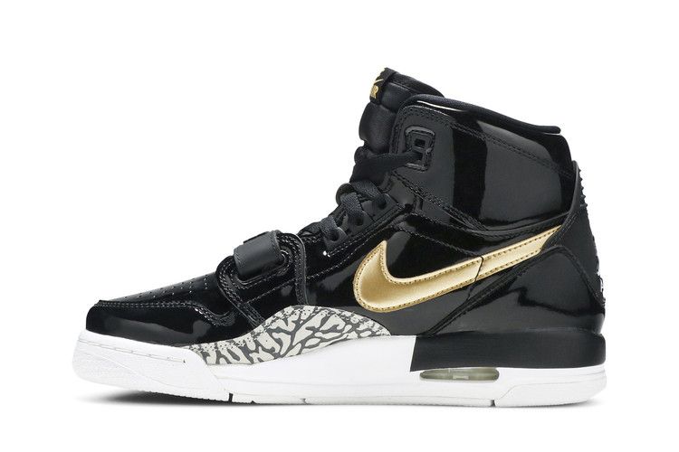 The Jordan Legacy 312 Black Gold Patent (GS) is now available at Side Kicks!