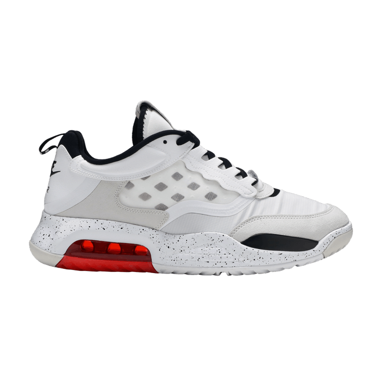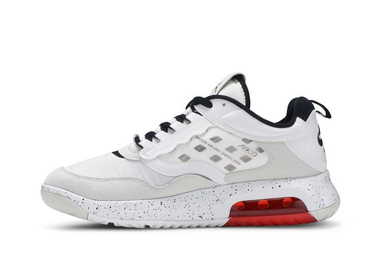 The Air Jordan Max 200 White Challenge Red Black features a white, challenge red, vast grey, and black colorway. The upper combines breathable mesh with durable leather overlays. An Air...