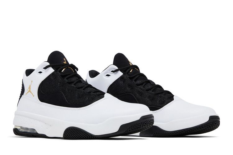 The Jordan Max Aura 2 White Black Gold is now available at Side Kicks!