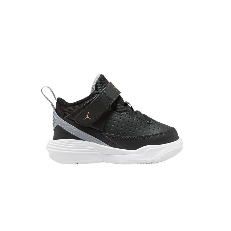 The Jordan Max Aura 5 Black White Wolf Grey Metallic Gold (TD) is now available at Side Kicks!