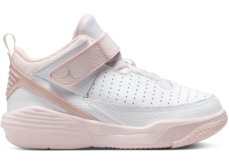 The Jordan Max Aura 5 White Violet Frost Pink Wash (PS) is now available at Side Kicks!