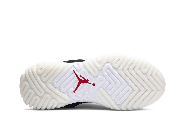 The Jordan Proto React launched alongside the Air Jordan 33, with this black and white colorway among the first releases. The black nylon upper features exposed stitching and taped seams...